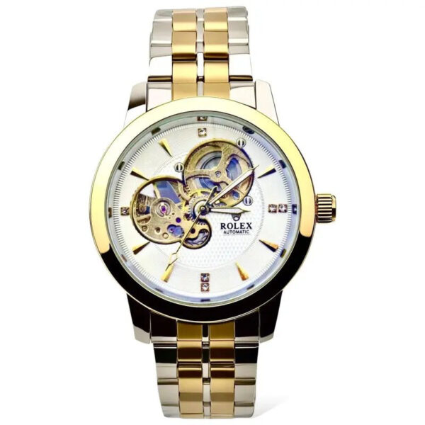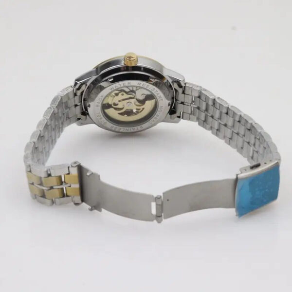 Discover timeless elegance with this brand-new luxury men’s watch, designed for those who value sophistication. Featuring a 44mm round skeleton dial, it offers a captivating view of its automatic movement, ensuring precision and durability. The high-quality chain strap provides a comfortable fit, while the double-lock clasp adds extra security. Crafted for both casual and formal wear, this watch combines classic style with modern innovation. Whether you’re attending an event or enhancing your everyday look, this exquisite timepiece is the perfect addition to your collection, making a bold statement of refinement and class.